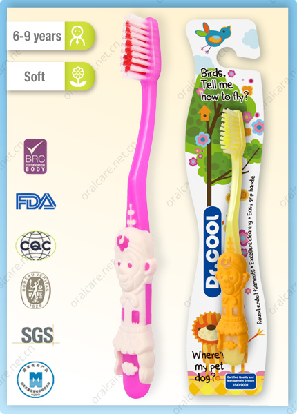 Kids toothbrush with cute animal shaped handle makes the brushing funny.