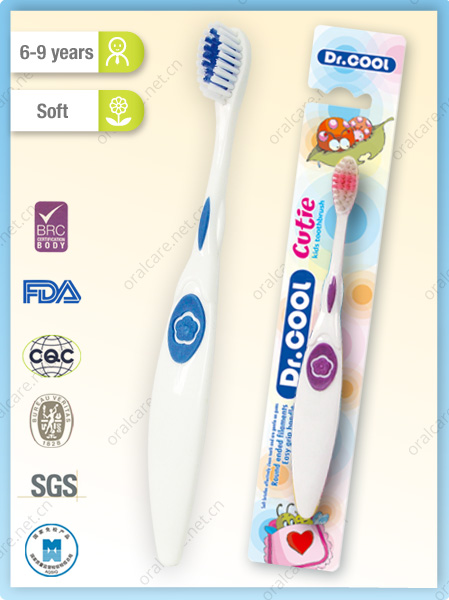 Children toothbrush with small head for handy cleaning in their small mouth; Nice flower on the handle is not only nice decoration, but also acts as anti-slippery part.