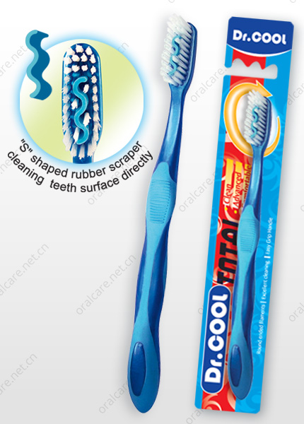 The advanced toothbrush has “S” shaped rubber scrapers in its bristles , can cleaning teeth surface directly.