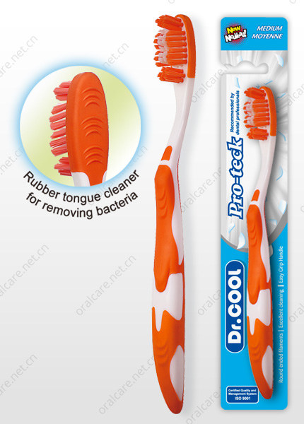 • + The tongue cleaner on the head backside can be applied easily to eliminate the bacteria from tongue surface