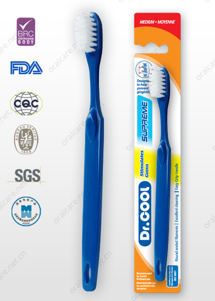 | Brush head size | Length | 31mm | | Width | 12mm | | Thickness | 4m | | Bristle | Brand & Type | Dupont Herox® Or Dupont Tynex® Or Floss bristles | | Thickness | MEDIUM 0.22MM | | Height | 11mm Max., | | Grinding | All the bristle ends have been ground to remove the acute angles; All ends are with round surface. | | Handle | Total Length | 163mm ( including the head ) | | Maximum Thickness | 5mm | | Material | PP |
