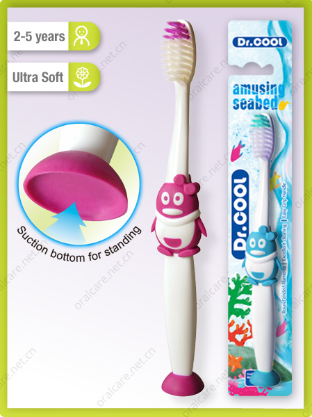 Cute kid's toothbrush in penguin shape,with one suction button for standing on the table.