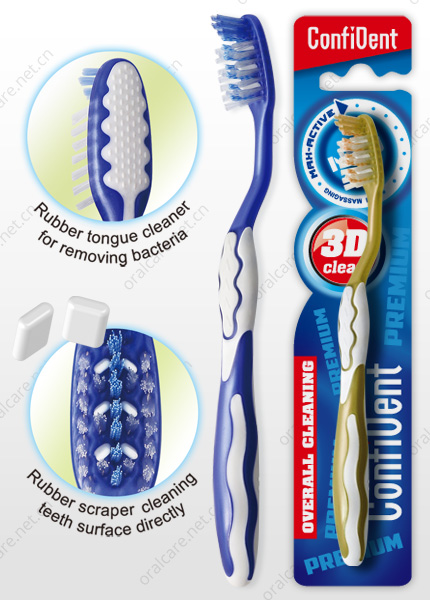 The advanced toothbrush has rubber polishing plates among its bristles.