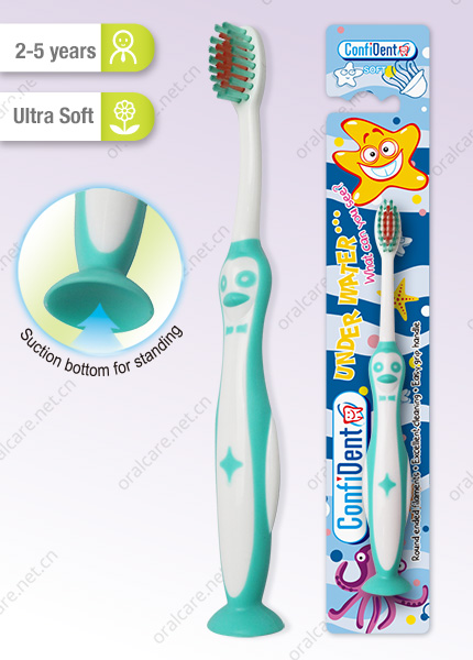 New kids toothbrush in penguin design with one suction button. |