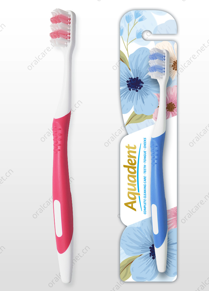 New adult toothbrush for whole mouth clean and teeth whitening with ergonomically shaped handle with non-slip universal thumb grip