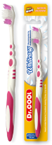 The toothbrush with tongue cleaner is in steamline body with soft rubber covered body for stable and |