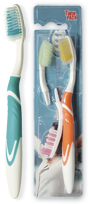 The new toothbrush with rubber massage bristle and tongue cleaner. |
